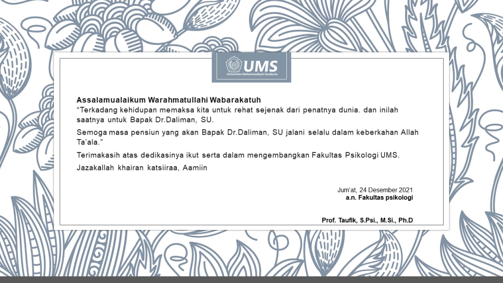 Surakarta, (24/11/2021) — Kegiatan tersebut dilaksanakan pada tanggal 24 Desember 2021 di Ruang Audiovisual UMS yang dihadiri Mahsiswa Dosen dan